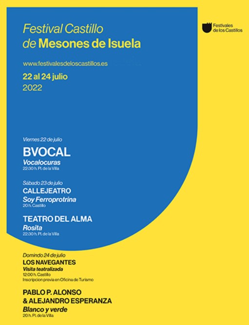 Leer más »Mesones de Isuela vuelve a formar parte de los escenarios escogidos para celebrar los Festivales de los Castillos. Del 22 al 24 de julio tendrá lugar en esta pequeña localidad de la Comarca de la Aranda, diversas actividades centradas en la música, el circo y el teatro. Una muestra más de la defensa del territorio aragonés por la que destaca este festival. Otra de las razones es su apuesta por una programación toda ella llena de artistas aragoneses. B Vocal…