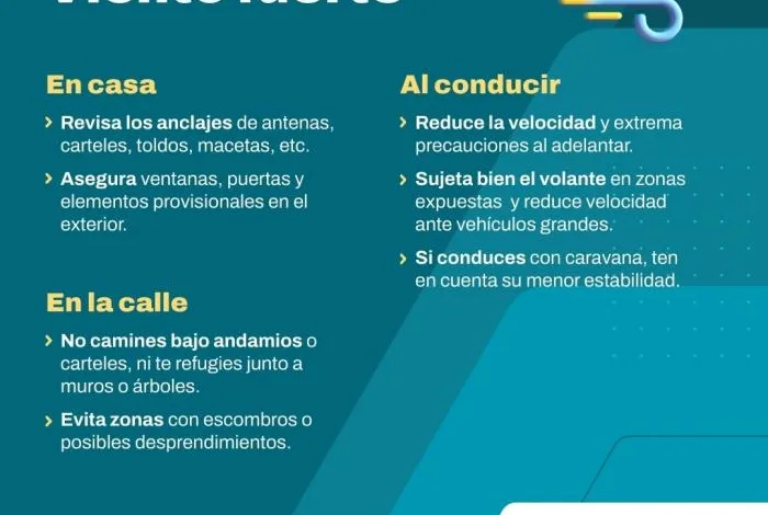 Protección Civil recomienda extremar la precaución en los desplazamientos. También aconseja evitar actividades al aire libre en zonas expuestas al viento. Es importante consultar la información actualizada a través de canales oficiales.