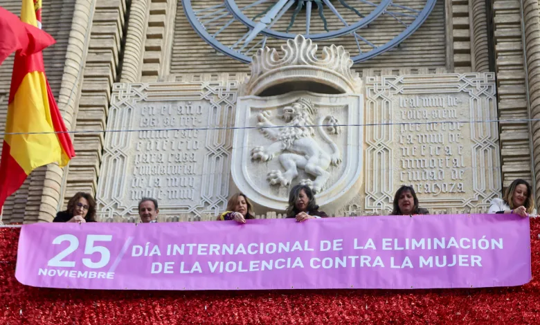 Zaragoza 25N homenaje en el Ayuntamiento y símbolos en la ciudad