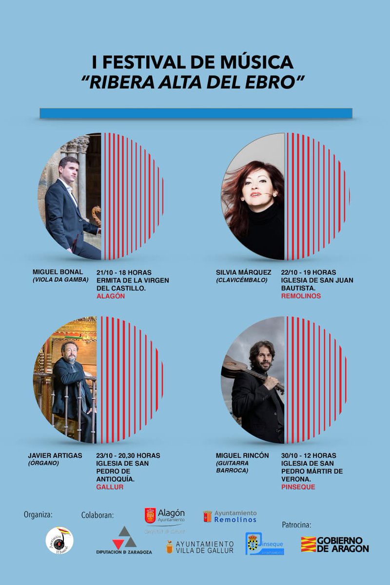 La comarca Ribera Alta del Ebro apuesta por el talento profesional aragonés de la música antigua con la celebración de su primer festival de música, que se celebrará del 21 al 30 de octubre y que ha sido presentado esta mañana en la sala de prensa de la Diputación de Zaragoza. El ciclo une arte y patrimonio, ya que las actuaciones tendrán lugar en cuatro iglesias representativas de Alagón, Remolinos, Gallur y Pinseque.