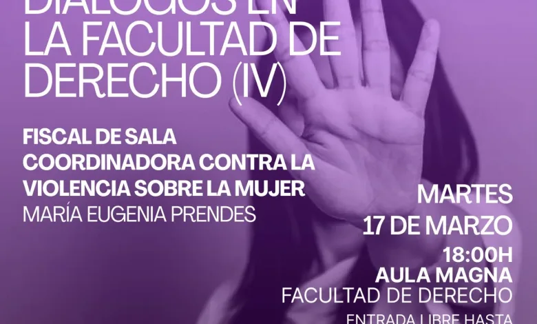 La fiscal de sala coordinadora contra la violencia sobre la mujer, MarĂa Eugenia Prendes, participarĂĄ en una nueva sesiĂłn del ciclo DiĂĄlogos en la Facultad de Derecho de Zaragoza. El encuentro tendrĂĄ lugar el martes 17 de marzo a las 18.00 horas en el Aula Magna de la Facultad de Derecho de la Universidad de Zaragoza. La entrada serĂĄ libre hasta completar el aforo.