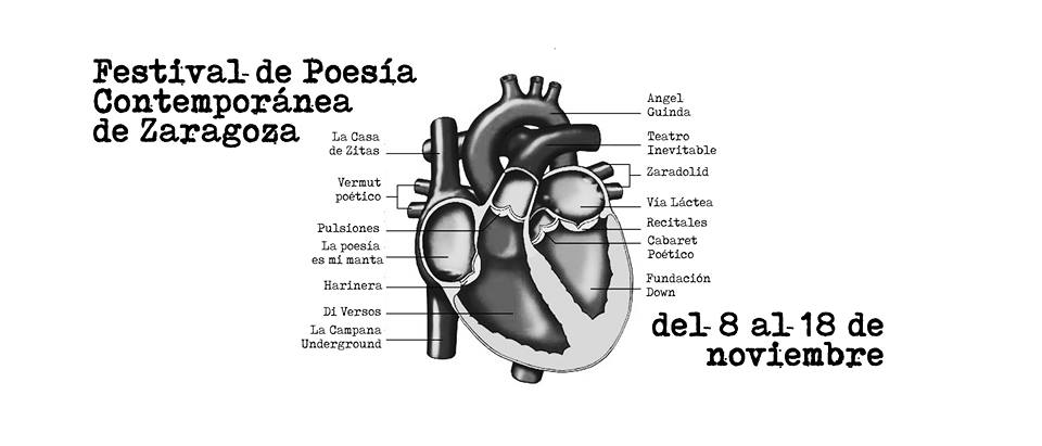 - 19:00 h Di Versos, recital poesía inclusivo en colaboración con Fundación Down. Harinera ZGZ. Participan José Malvís,Elena Huerta,Marta Navarro, Leticia Zapatero, Alba Soto, Carmen Aliaga,Carla Suranell, Jose Terol, Teresa Aliaga, Yasmina Segura, Alejandra Moncada, Juanjo De Tierra, Pablo Velasco, Carlos Girón, Marta Trebol, Pablo Goyeneche.