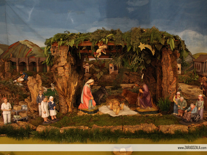 Con más de 50 años de historia, ha visto durante éstos años como ha ido creciendo el número figuras que lo incluyen. Entre ellas, mezcladas con las figuras típicas de un belén tradicional, se pueden encontrar figuras que muestran a algunos de los residentes de éste hogar caritativo zaragozano. - Belén de las Hermanas del Sagrado Corazón de Jesús y de los Santos Ángeles. Plaza del Pilar, 22. De 10:30 a 21 h.
