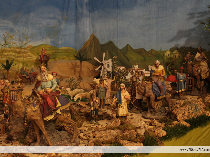 Construcción de estilo napolitano realizada por la Asociación Amigos del Belén de Zaragoza. Dividido en dos partes, recrea la llegada de los Reyes Magos a Belén así como diversos oficios tradicionales y un castillo. - Exposición de Belenes del Mundo. Bajos de Caja Rural de Teruel de Paseo Pamplona (acceso por calle Bilbao). Del 14 al 23 de diciembre.
