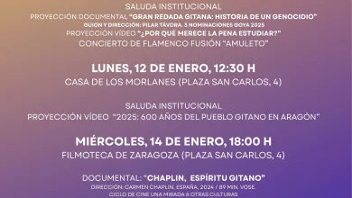 Zaragoza conmemora el Día de la Cultura Gitana en Zaragoza con una programación cultural repartida en tres jornadas entre el 9 y el 14 de enero. La iniciativa está impulsada por el Ayuntamiento de Zaragoza a través de la Casa de las Culturas, en colaboración con las asociaciones gitanas de la ciudad. El objetivo es acercar a la ciudadanía la historia, la realidad actual y la aportación cultural del pueblo…