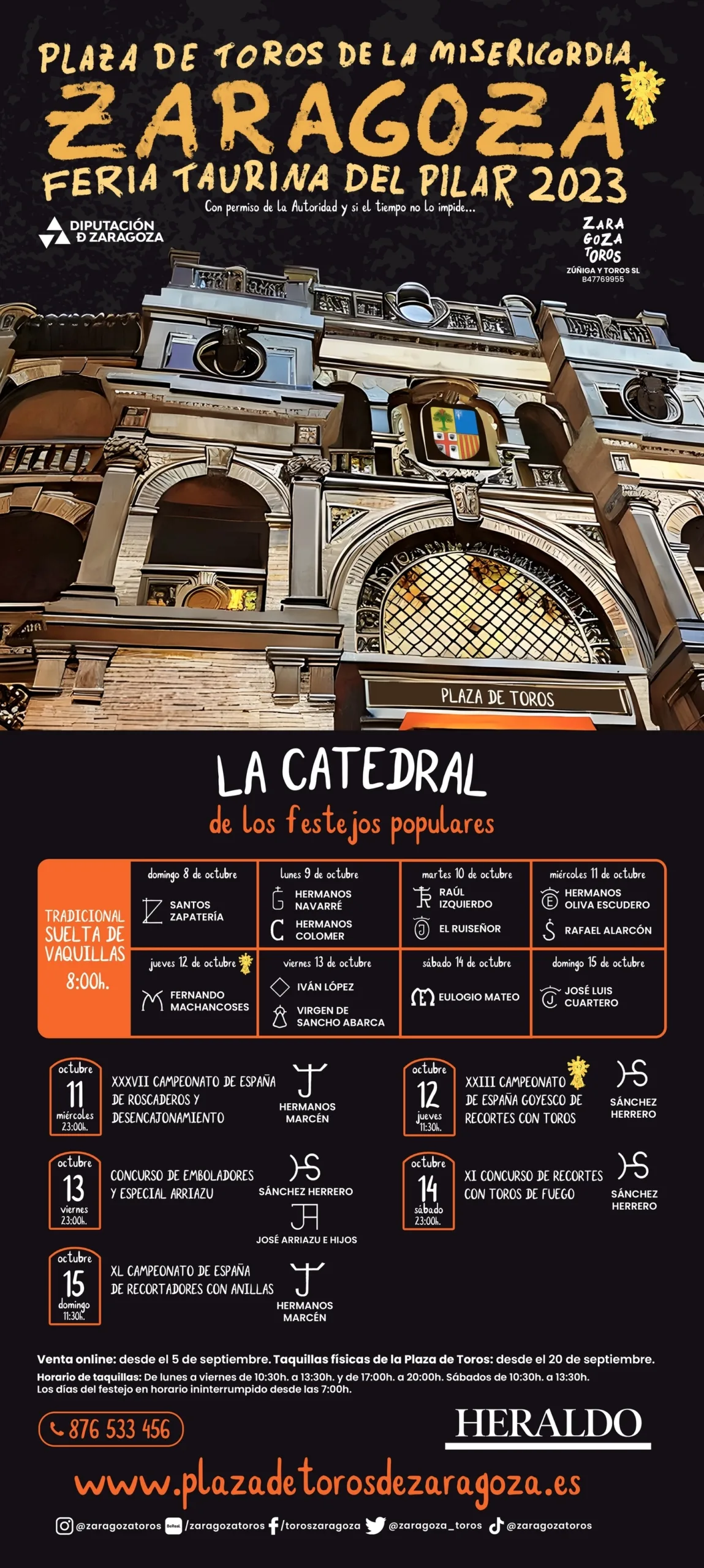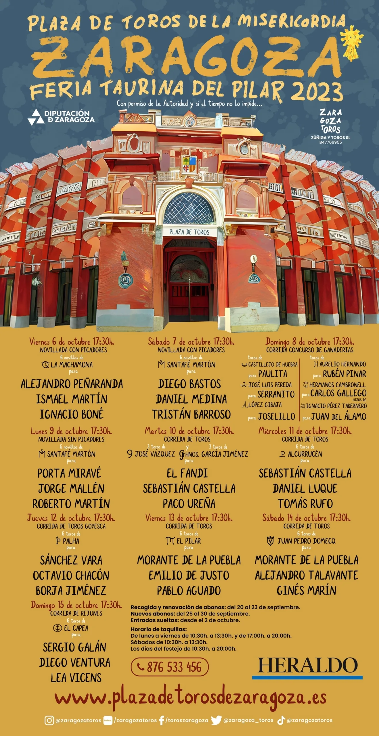 Las combinaciones del serial para la Feria del Pilar 2023 conforman una feria muy completa. Destacando la presencia de las primeras figuras del toreo, los nombres emergentes, novilleros con gran trayectoria y la calidad y variedad de encastes en las ganaderías seleccionadas para el ciclo de octubre.