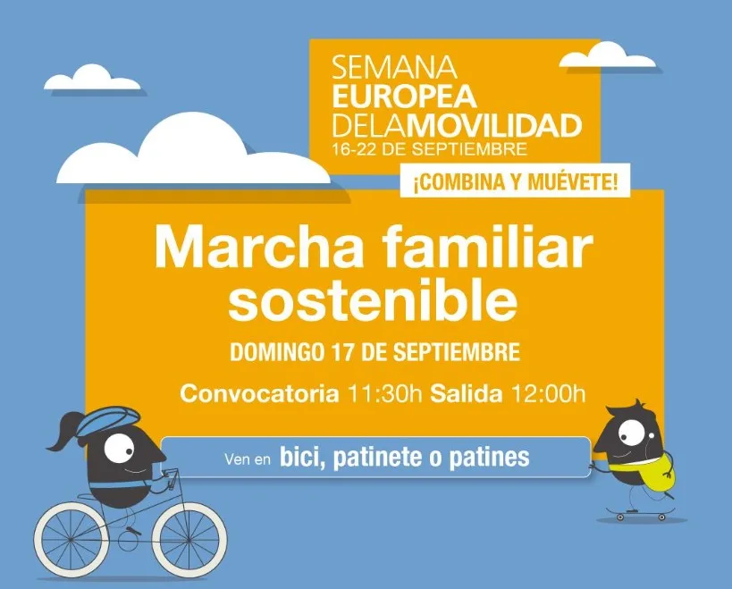 Recorrido familiar en bicicleta, patinete o patines para promocionar el uso cotidiano y seguro de medios de movilidad sostenible para los desplazamientos por la ciudad.